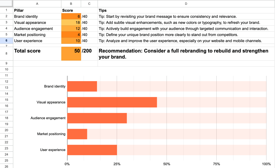 I’ve created a free tool that guides you through this process to help you assess whether it’s time for a rebranding or just a brand refresh. Think of it as a quick brand health check to get you on the right track.